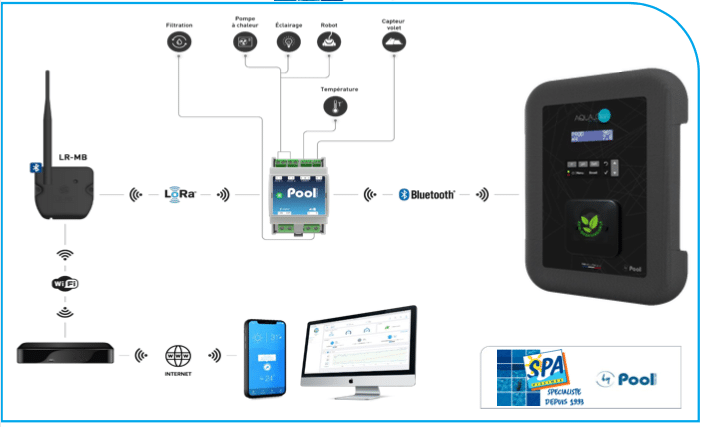 Système AQUALO contrôle les 2 fonctions essentielles à la désinfection de l’eau : la production d’un désinfectant et la régulation du pH. Il vous assure un confort d’utilisation de votre piscine. Il vous dispense des désinfectants chimiques tout au long de la saison. Avec le système AQUALO, le maintien d’une eau saine n’est plus une corvée. Le système AQUALO produit un désinfectant puissant et efficace par l’électrolyse de l’eau salée. Il vous suffit de régler la production en fonction du volume et de la fréquentation de votre piscine. C’est une option qui peut être choisie après la pose de la piscine, mais nécessitera une modification dans le local technique de votre piscine.